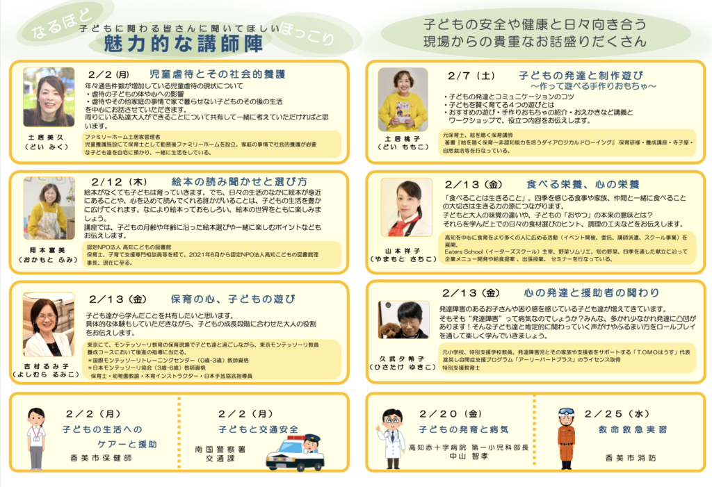 全12講座からなるファミサポ講習会は、魅力的な講師陣が勢揃いです!!